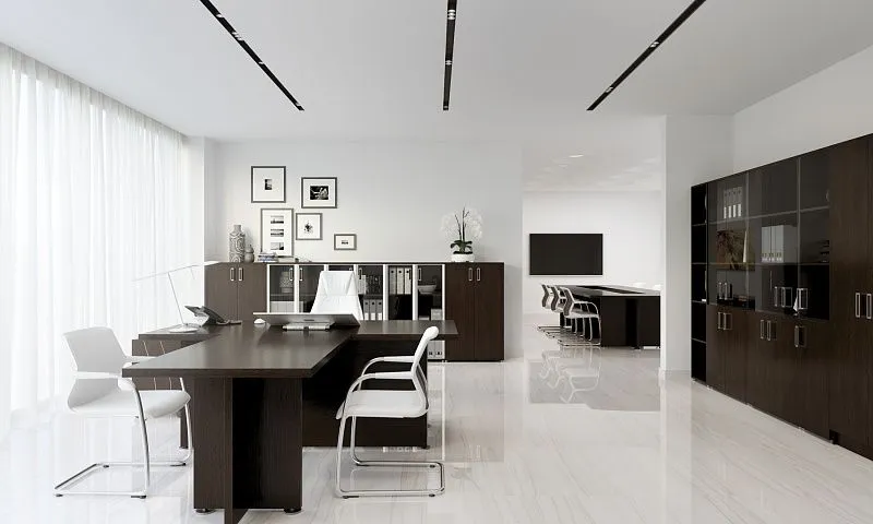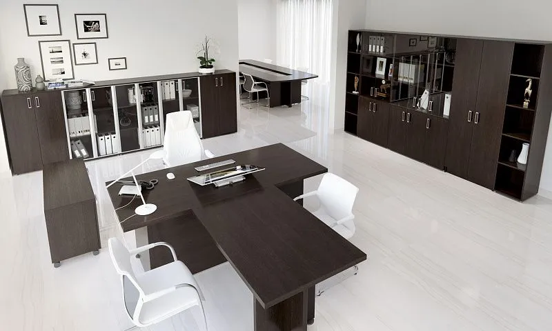 Лаконичные и строгие формы, правильные линий, благородная цветовая гамма поддержат деловую атмосферу офиса.